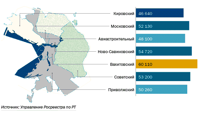 За 2011 год в Казани цены на рынке первичного жилья выросли в среднем на 10%, на вторичном - на 30%. Наиболее активный рост цен начался в октябре прошлого года. В начале 2012 года средняя цена на сданную новостройку составляла 47,7 тыс. руб./кв. м, на вторичное жилье — 53,4 тыс. руб./кв. м.